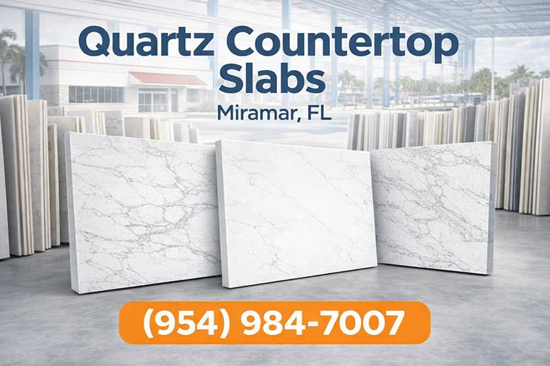 Even if you’re over in Sunrise, we’ve got the inventory to match your Miramar-area style. Call (954) 984-7007 to start—your perfect quartz countertop slab is waiting.